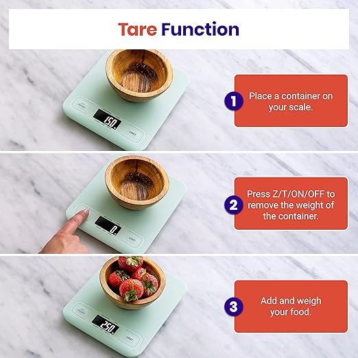 - Reliable Accuracy: Weigh items between 2–5,000 grams in 1-gram increments. Fine-tuned precision makes the scale great for cooking and baking