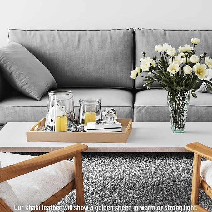 - 【DURABLE AND PRACTICAL】Our Ottoman tray is made of 9mm thick medium density fiberboard, Outer pearlescent leather veneer. The bottom is completely wrapped in leather, soft and smooth, won't snag your ottoman or other furniture surface.