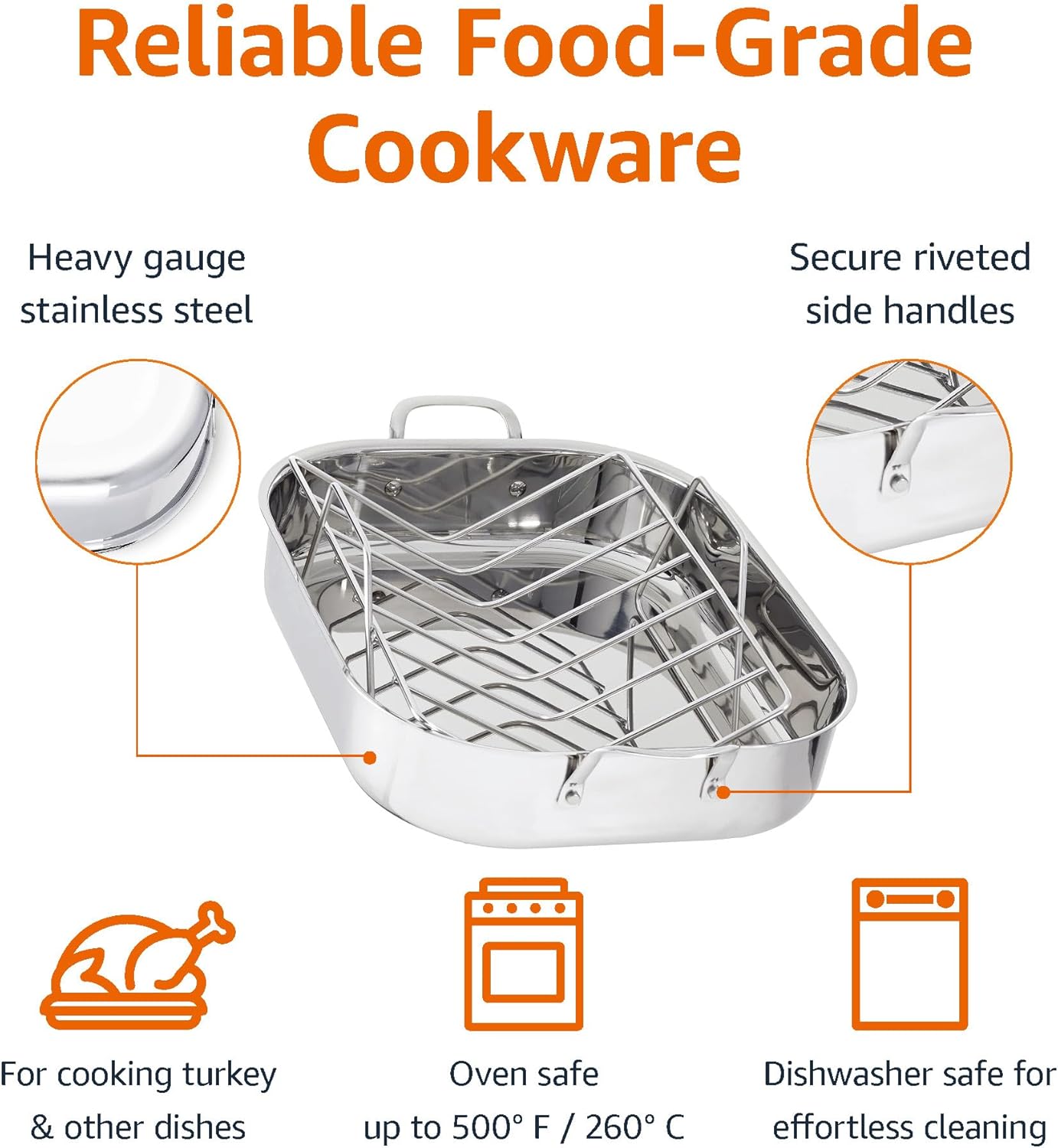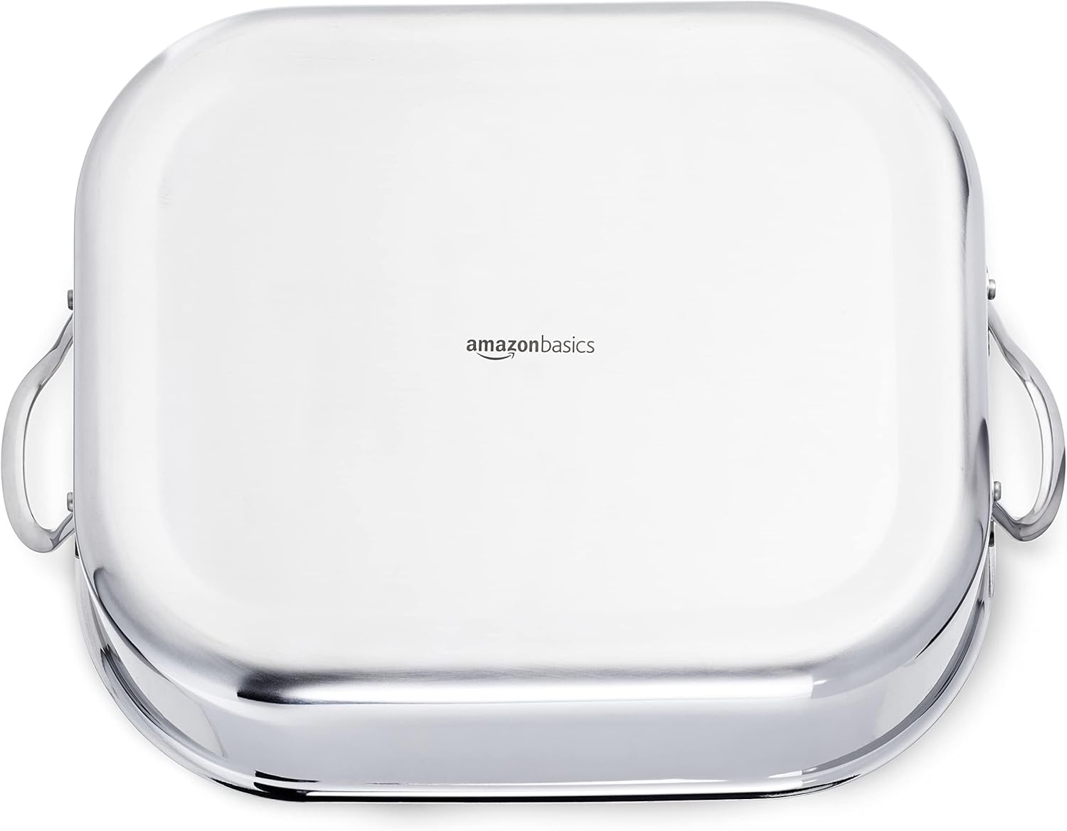 Amazon Basics Stainless Steel Rectangular Roasting Pan with Rack, 16 in