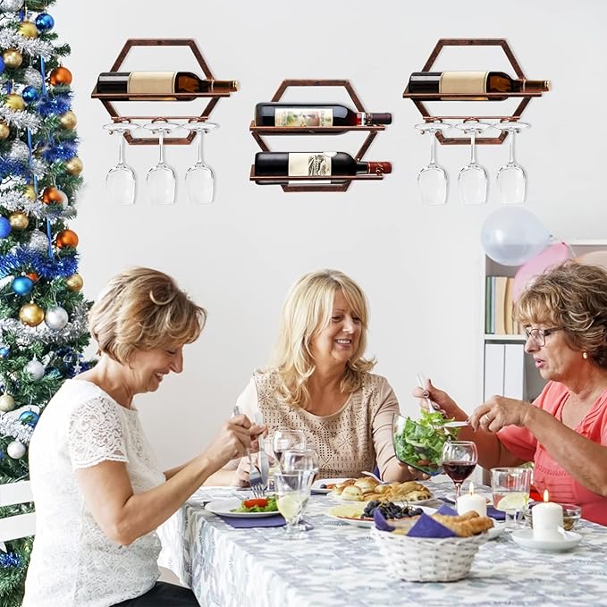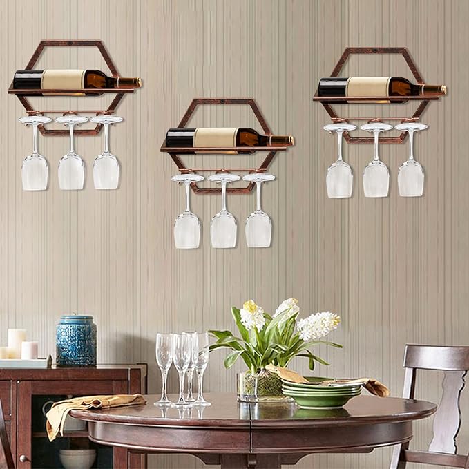 - 【2-IN-1 Wine Display Rack】Our wall mounted wine bottle holder presents your precious wine bottles, goblets in a stylish way, shows a unique artistic atmosphere. Wine rack holds 1 bottles of wine, or champagne, and 3-6 goblets.