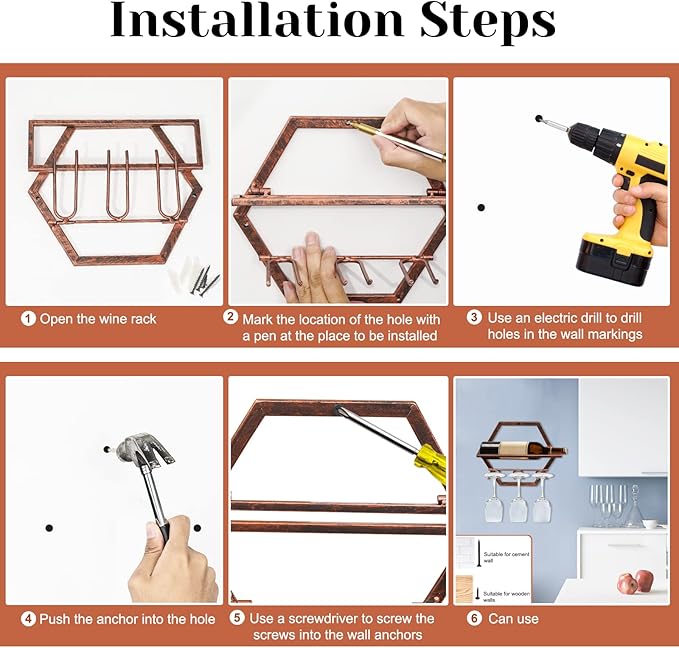- 【Elaborate Production】The addition of retro elements makes the display of the wine glass holder more beautiful. Each wine glass rack is carefully made by us, and each piece is a unique artwork, which can better display your collection of fine wine and make a deep impression