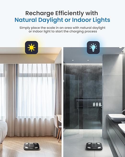 - Endless power supply: Enhanced with innovative light energy technology, this Renpho solar scale can be charged by either sunlight or indoor light making it a sustainable use. No need to replace batteries or tripping over wires to recharge