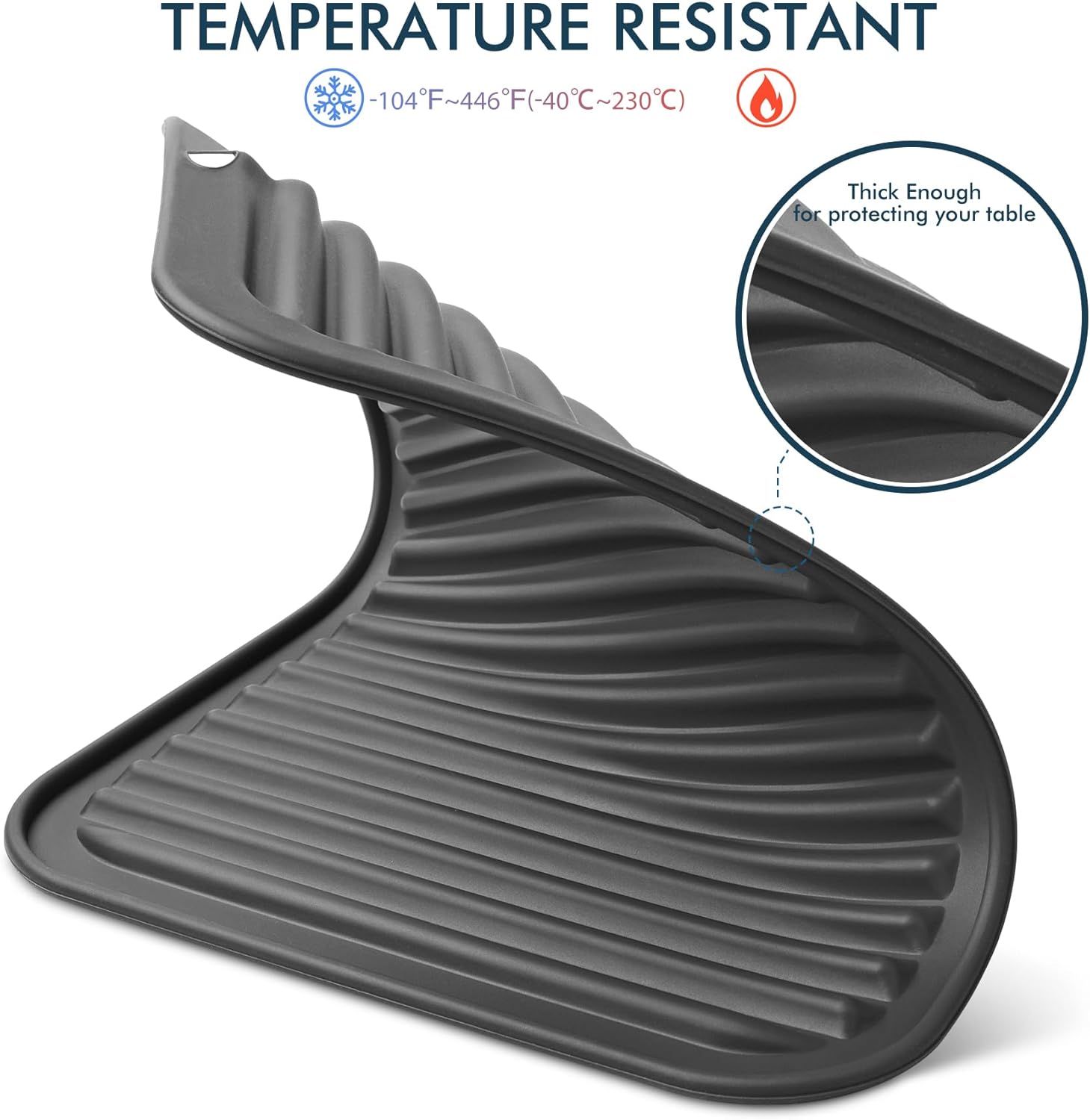 HOTEC BPA Free Silicone Trivets for Hot pots and Pans, 446℉ Heat Resistant for Kitchen Counter Dish Drying Mat, Set of 2 Dark Grey