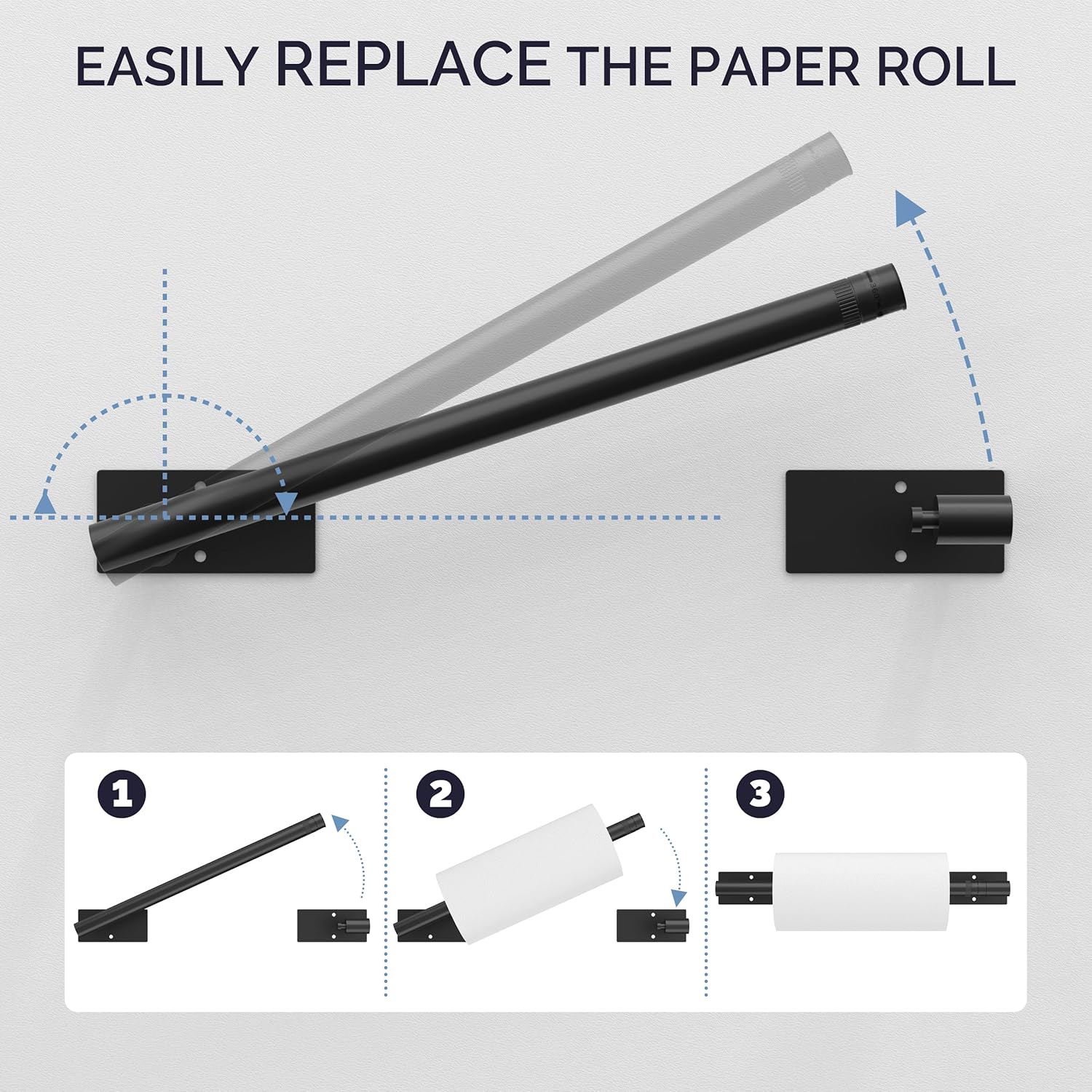 - [360°Rotating Buckle Design] The paper towel holder wall mount's 360° rotatable buckle design securely holds it in place and prevents the tissue roll from falling off when torn