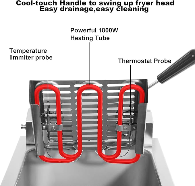 - EASY MAINTENANCE:Unique Fryer head swing-up function for easy drainage.Easy maintenance Fryer it is.