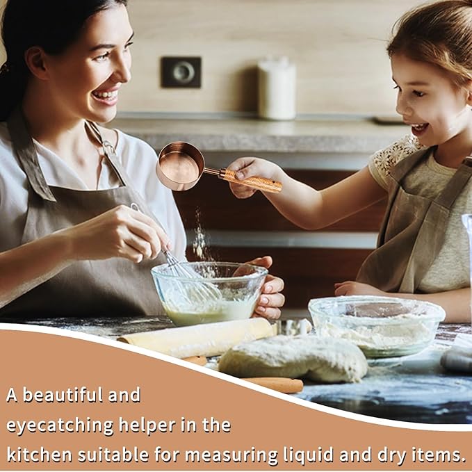 Measuring Cup with Wooden Handle, 1/4 Cup Titanium-plating 60 Ml Stainless Steel, Rose Gold