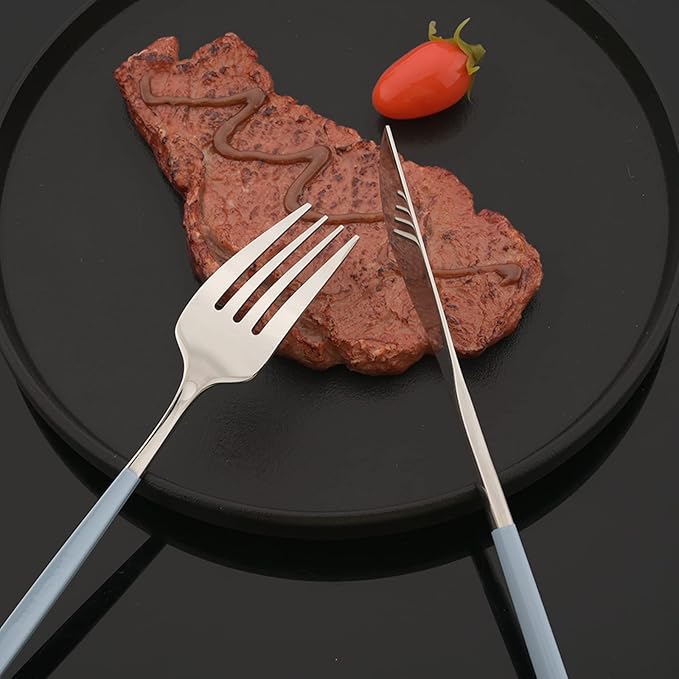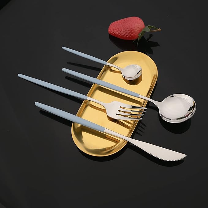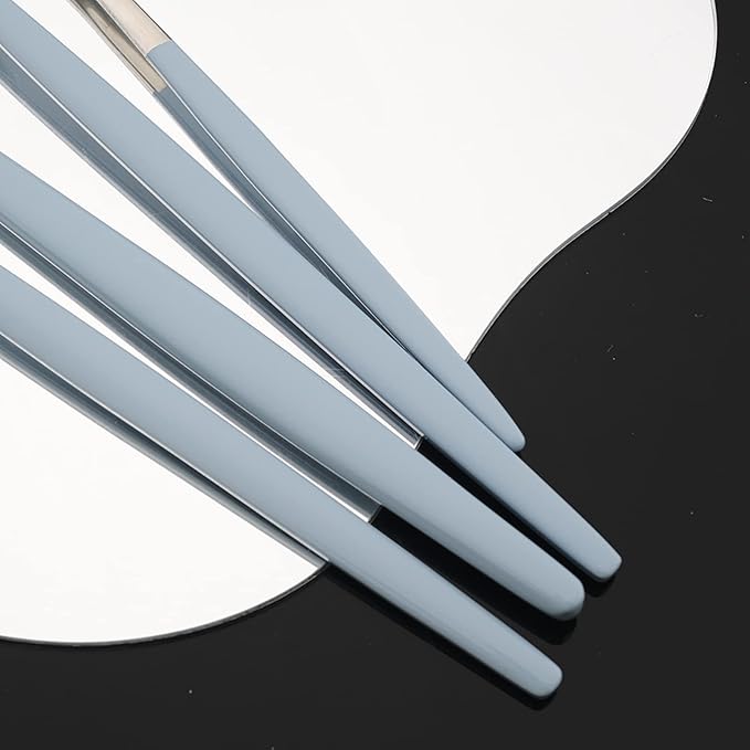 JASHII Flatware Set 24 Piece, Stainless Steel Silverware Set, Macaron Small Fresh Color Cutlery Set, Modern Elegant Tableware Set for Party, Christmas, Dinner (Haze Blue Silver)