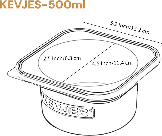 - Dimension of each KEVJES Dough Container is 5.3 x 5.3 x 2.6H inches, volume:500ml. Perfect for 250g Dough Ball Proving.