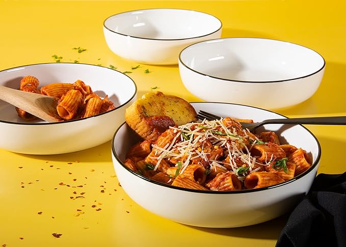 - CONTEMPORARY DESIGN: a classic pearl porcelain combined with a contemporary black lip to create a sleek and aesthetically pleasing set