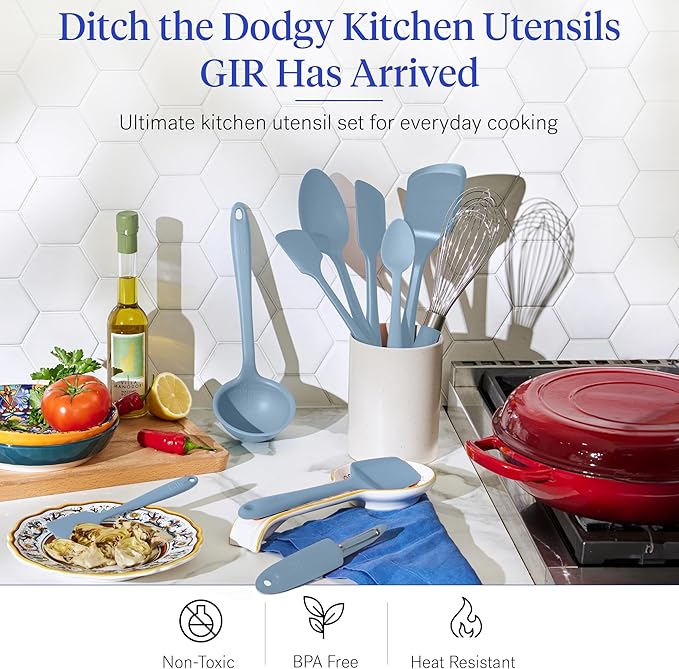 GIR: Get It Right 10-Piece Spatula Set & Silicone Utensils for Kitchen - Slate - Heat Resistant to 425°F - Dishwasher Friendly - Includes Ladle, Whisk, Potato Peeler & Kitchen Spoons