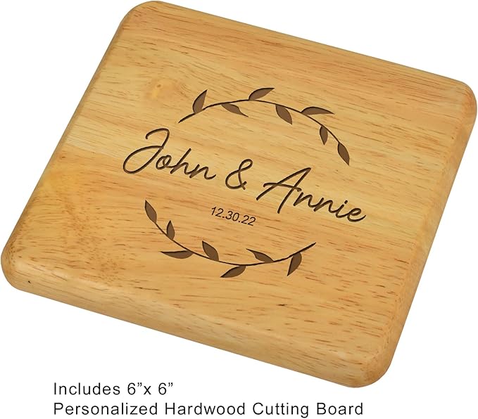 - Euipped with 2 glass wine glasses - napkins - corkscrew - bottle stopper - cheese knife - Personalized hardwood cutting board