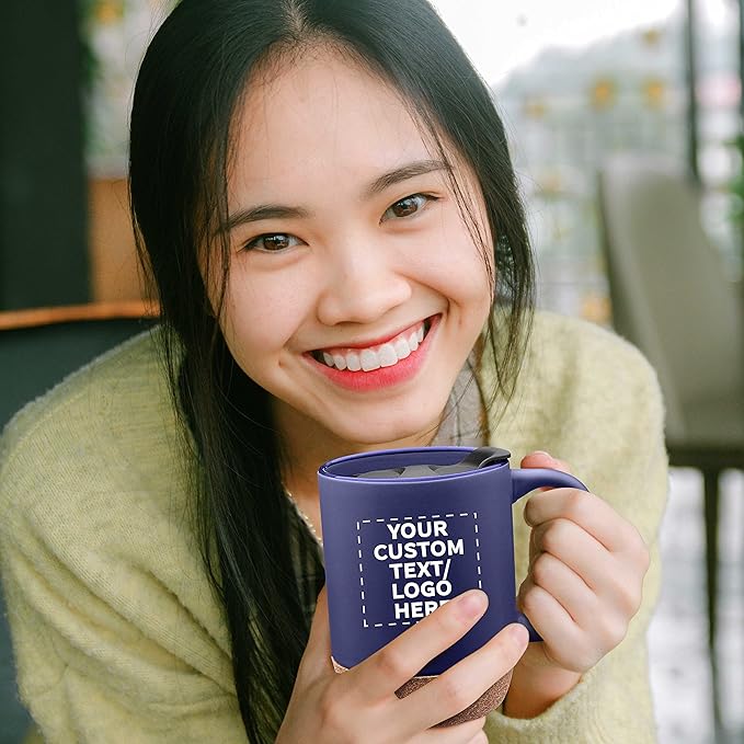 Custom Barista Ceramic Mugs with Cork Bottom 13 oz. Set of 12, Personalized Bulk Pack - Perfect for Coffee, Tea, Espresso, Hot Cocoa, Other Beverages - Blue