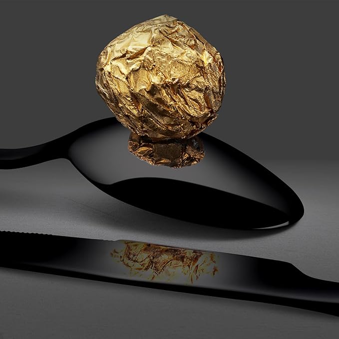 - Healthy and Elegant - The mysterious shinny black appearance, standing out from the ordinary silverware, creates an elegant, noble and luxurious dining scenes. The mirror texture makes it modern, stylish and fashionable. The healthy titanium plated make the surface of flatware more strong, no need to worry about fading or cracking.