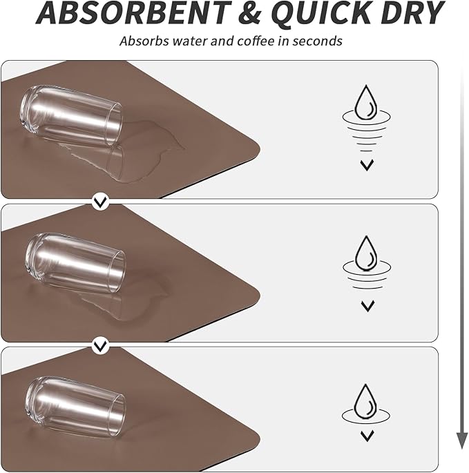 - ☕【Wide range of uses】 It is not just a coffee bar mat, but also a high water absorption and quick dry pad that can be widely used as a drying mat for kitchen countertop, cups, water dispensers, mixers, ice cream machines, dish washing racks, dinner plates, tableware, etc., or as a food pad for pets.