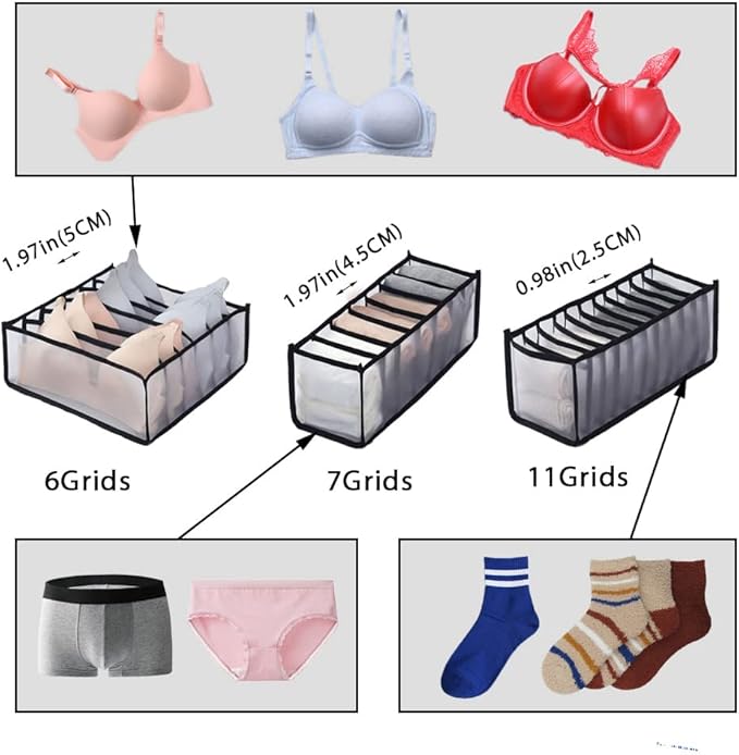 - ▶【Package Include】mesh drawer organizers for clothing set include: 3*6grids-m for bra storage. 3*7grids-s for underwear storage. 4*11grids for sock storage. pay attention to whether the size of the product fits your clothes