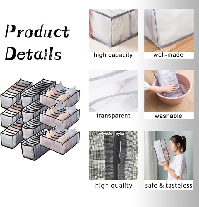 HSLFUAI 10 Pack Wardrobe Clothes Organizer for Bra, Underwear, Sock, Tie Transparent Mesh Drawer Clothes Storage, Women Underwear Storage Compartment Box