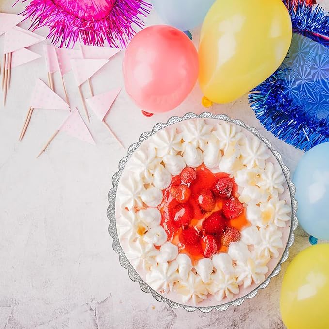 - Sturdy cake board: Made of food grade material, the surface is coated with aluminum foil, Note: Do not rinse with water directly, please wipe the cake board with a wet paper towel before and after use.