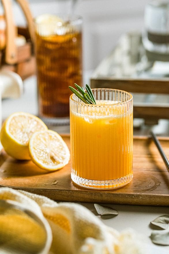 - 【Vintage Origami Style】: Our ribbed drinking glasses feature with straight ribbed textures on the surface. Designed in special vintage origami style, with an european retro flavor. The elegant cylindrical shape is comfortable to grip and ideal to preserve beverages' crispness for a fresh taste every time