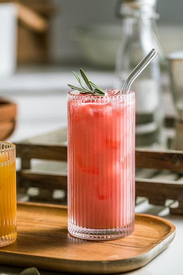 - 【Vintage Origami Style】: Our ribbed drinking glasses feature with straight ribbed textures on the surface. Designed in special vintage origami style, with an european retro flavor. The elegant cylindrical shape is comfortable to grip and ideal to preserve beverages' crispness for a fresh taste every time