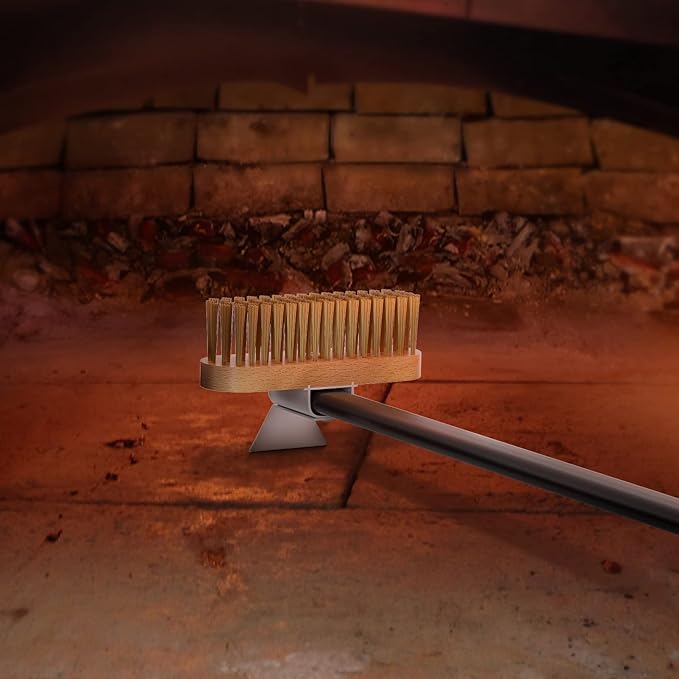 - PIZZA OVEN BRUSH AND ASH SHOVEL: The pizza oven brush is made with an aluminum handle and durable brass bristles, perfect for reaching deep into your pizza oven for cleaning.