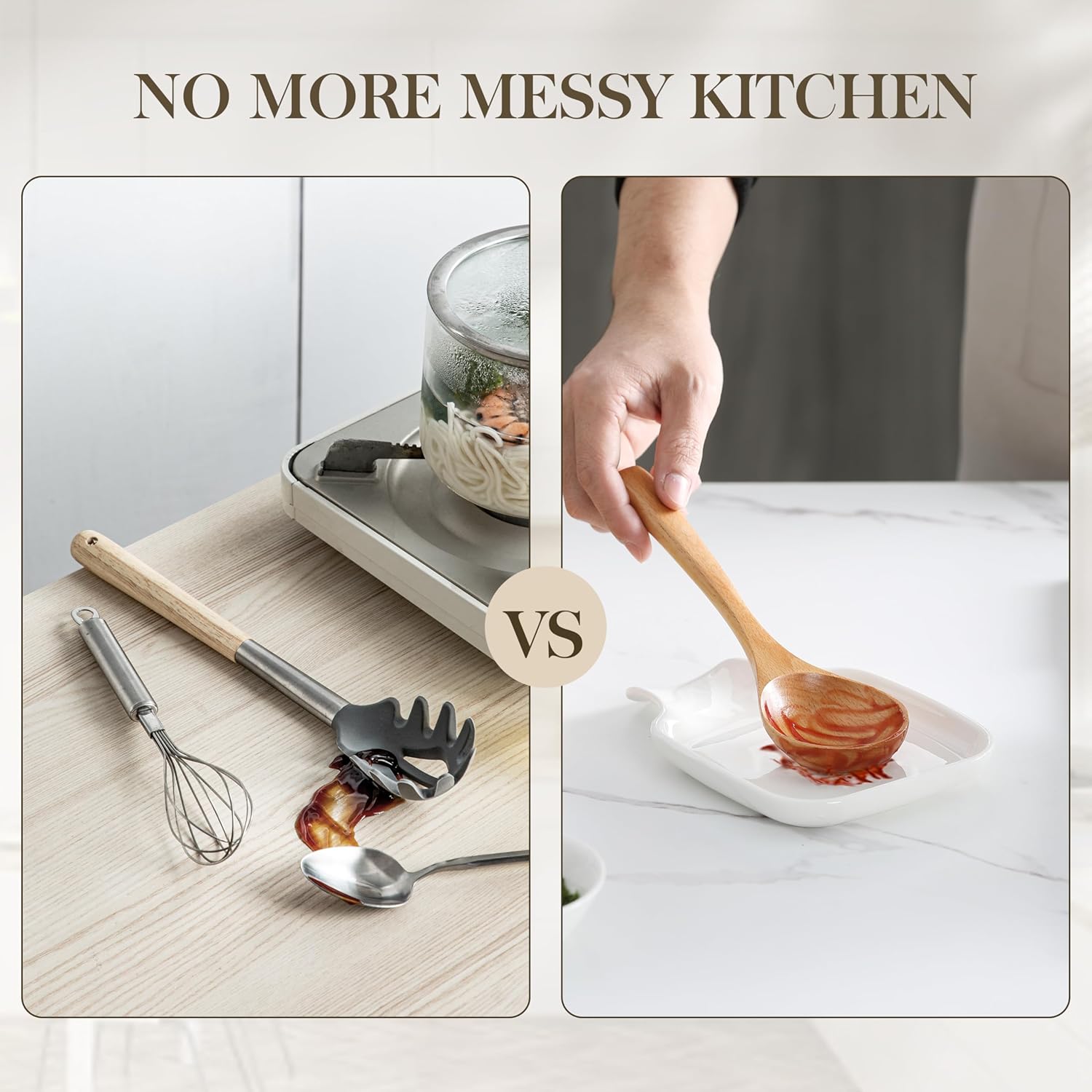 - 【GIFTABLE】This ivory white spoon rest is practical and functional, yet adds a touch of personality to any kitchen. It is a weet gift for a housewarming, wedding, thanksgiving, Christmas, or New year. It can match all kitchen styles and be cute home decor.