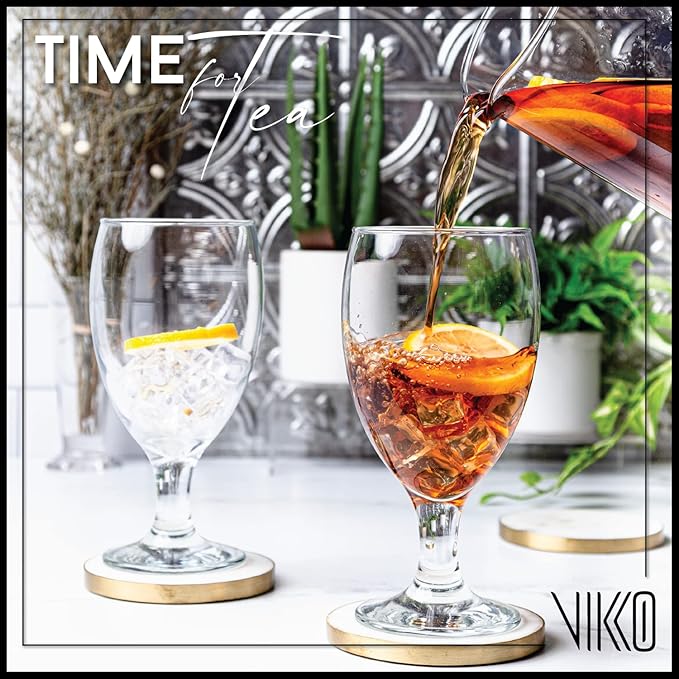 Vikko Classic Goblet Party Glasses, 20 Ounce Iced Tea and Water Goblets, Set of 12, Dishwasher Safe Durable Glassware
