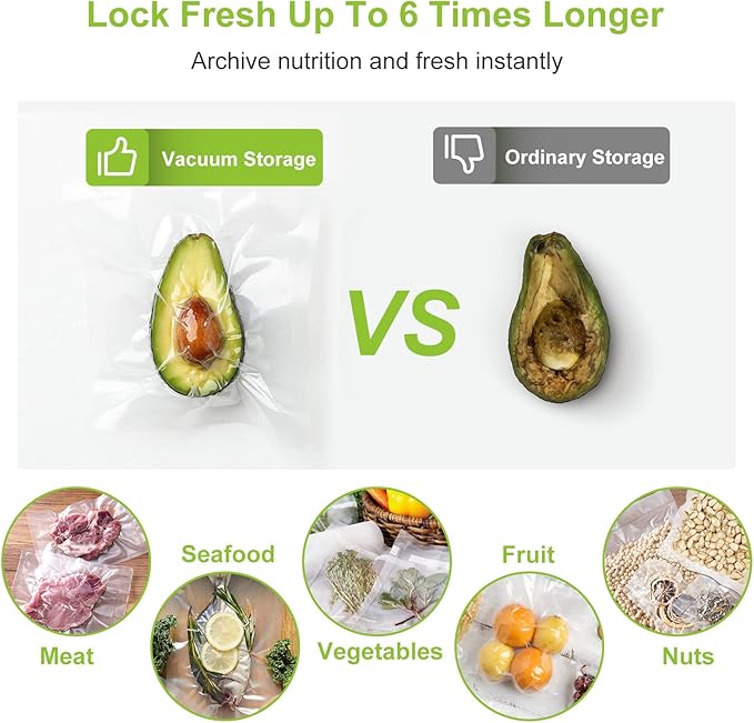 - 【CUSTOMISED FOOD VACUUM BAGS】 Bonsenkitchen vacuum sealer roll is compatible with all major brand vacuum sealers, you can make a customized-size vacuum bag in a few seconds.