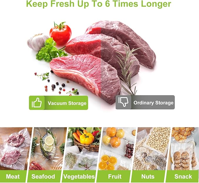 - 【TIME & MONEY SAVING】 Vacuum seal rolls allow you to make your own length according different size of food 5 times longer than zipper bags basically depending on the type of food. Designed with food-grade PA+PE material, Bonsenkitchen vacuum bags are a practical addition to your kitchen.