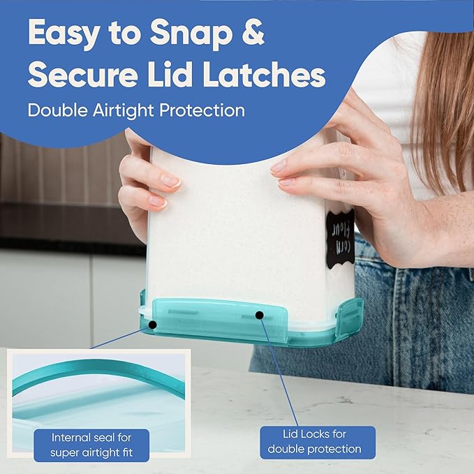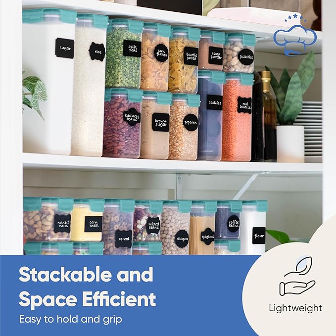 Chef's Path Airtight Food Storage Containers with Lids, 24 pcs (Teal Color) Plastic Kitchen and Pantry Organization for Dry Food, Flour and Sugar, BPA Free