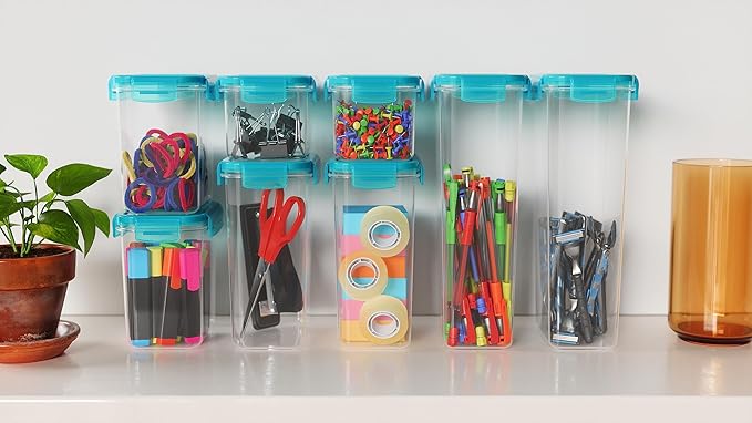 - Space-Saving Design - Maximize your storage space with our highly stackable translucent teal containers. They fit seamlessly in your refrigerator, cupboards, and kitchen counters, helping you maintain an organized and clutter-free environment.