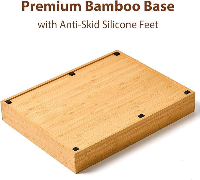 - TOTAL BAMBOO: Made of premium bamboo (even the base), pretty color and texture. Better performance against scratches. Lasts longer.