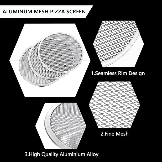- HIGH TEMPERATURE RESISTANT MATERIAL : Pizza screen 12 inch is made of aluminum alloy material, strong and durable, can withstand high temperature and evenly transfer heat to your pizza, high wear resistance, high quality material, ensure you can use for a long time