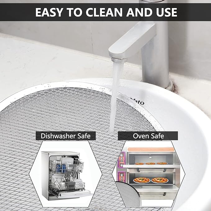 - SEAMLESS RIM DESIGN: The pizza mesh screen 12 inch features seamless bezels and a stable design that allows for more ventilation by promoting efficient air circulation and easier transfer of heat, ensuring a thinner crust for evenly baked pizza