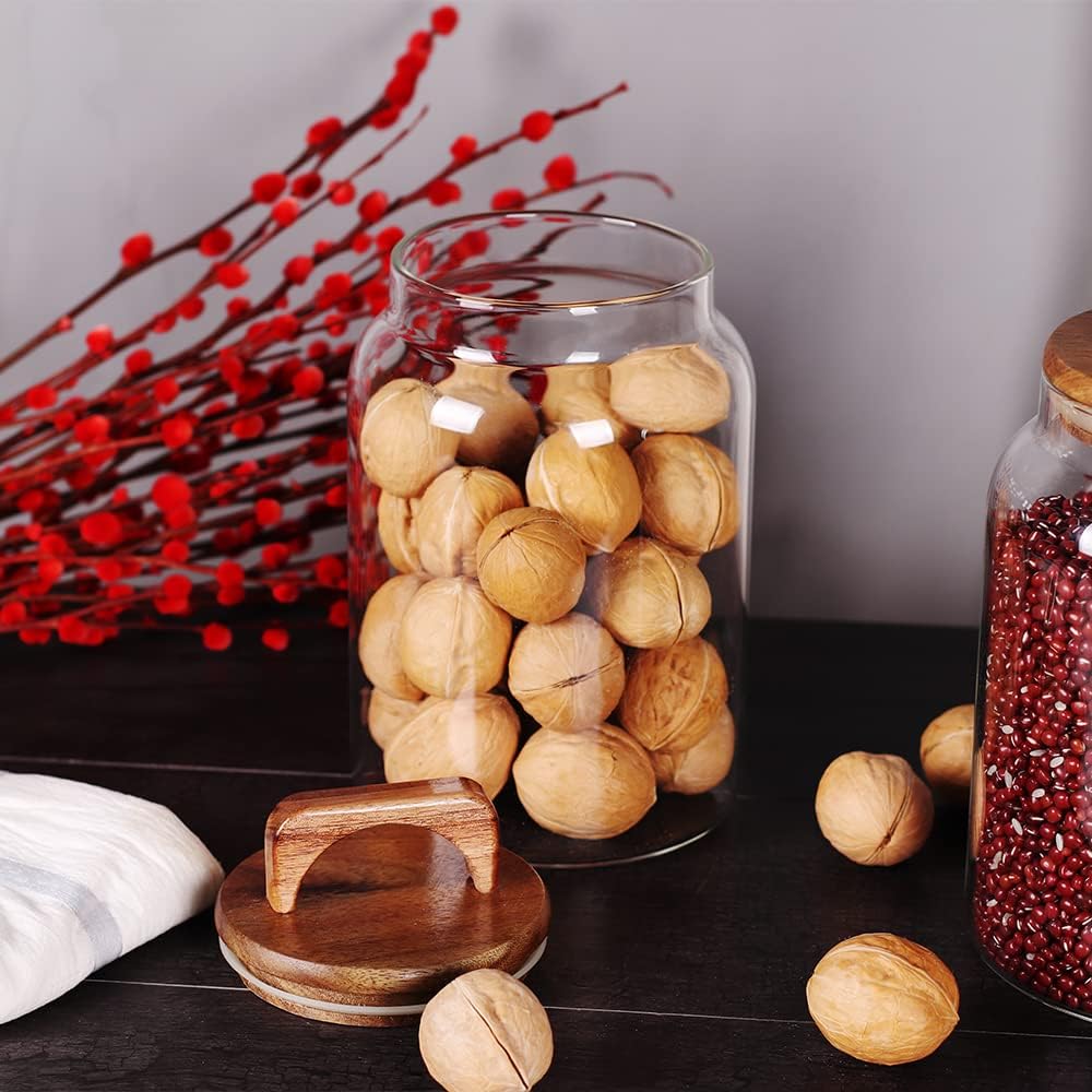 - Classic design :Unique handle design, very practical. The wooden cover of the thickened glass jar is easy to remove, even for children and the elderly