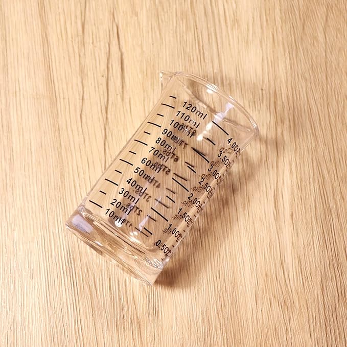 - Versatile Kitchen & Bar Tool – This 4 oz / 120ml small glass measuring cup is ideal for cooking, baking, crafting cocktails, blending drinks, portioning coffee creamer, or using as a shot glass measuring cup for liquids, alcohol, or espresso