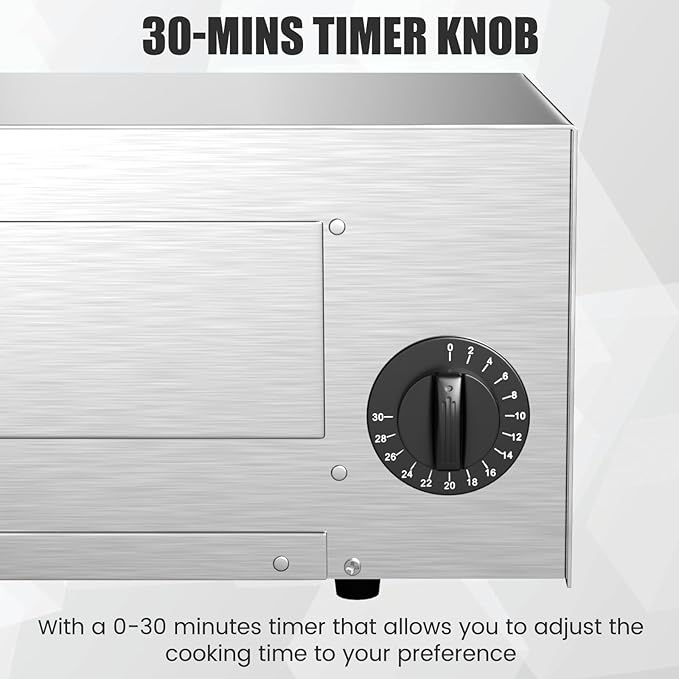 - π[Timing & Auto Shut-Off]π Based on crust size, topping and personal set, you can set the timer 0-30 mins to bake your pizza. Plus, baker can voluntarily shut off if the temperature is too high.