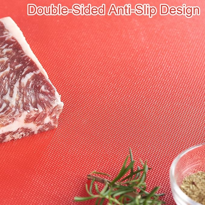 CURTA 2-Pack Red Cutting Boards for Kitchen, 18" x 12" x 0.5" Color Coded Plastic Chopping Board with Anti Slip Surface Dishwasher Safe