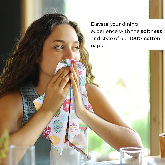 Urban Villa Easter Cloth Napkins Easter Eggs Print 100% Cotton Dinner Napkins Set of 12 (20x20 Inches) Highly Absorbent Soft Durable Washable Reuasble Ideal for Everyday Use Wedding Parties