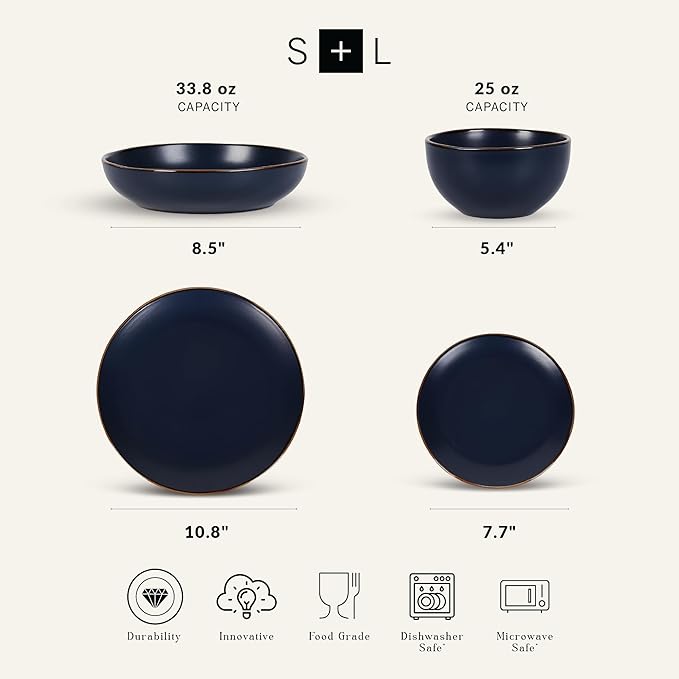 - 【SERVICE FOR 4】 Includes 16 pieces: four 7.76-inch salad plates, four 10.75-inch dinner plates, four 33.8fl.oz. pasta bowls, and four 25 fl.oz. round bowls. Perfect for everyday use or special occasions.