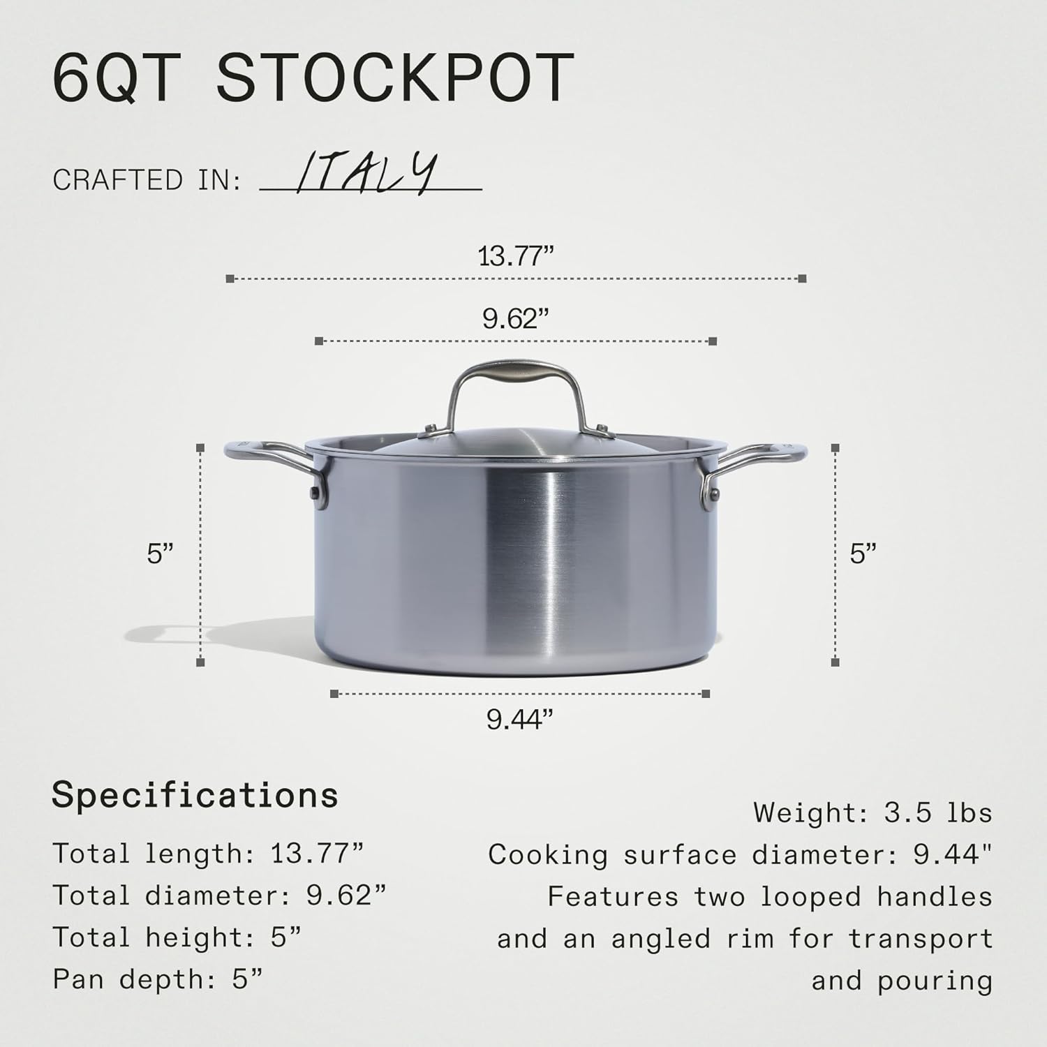 Made In Cookware - 6 Quart Stainless Steel Stock Pot With Lid - 5 Ply Stainless Clad - Professional Cookware - Crafted in Italy - Induction Compatible