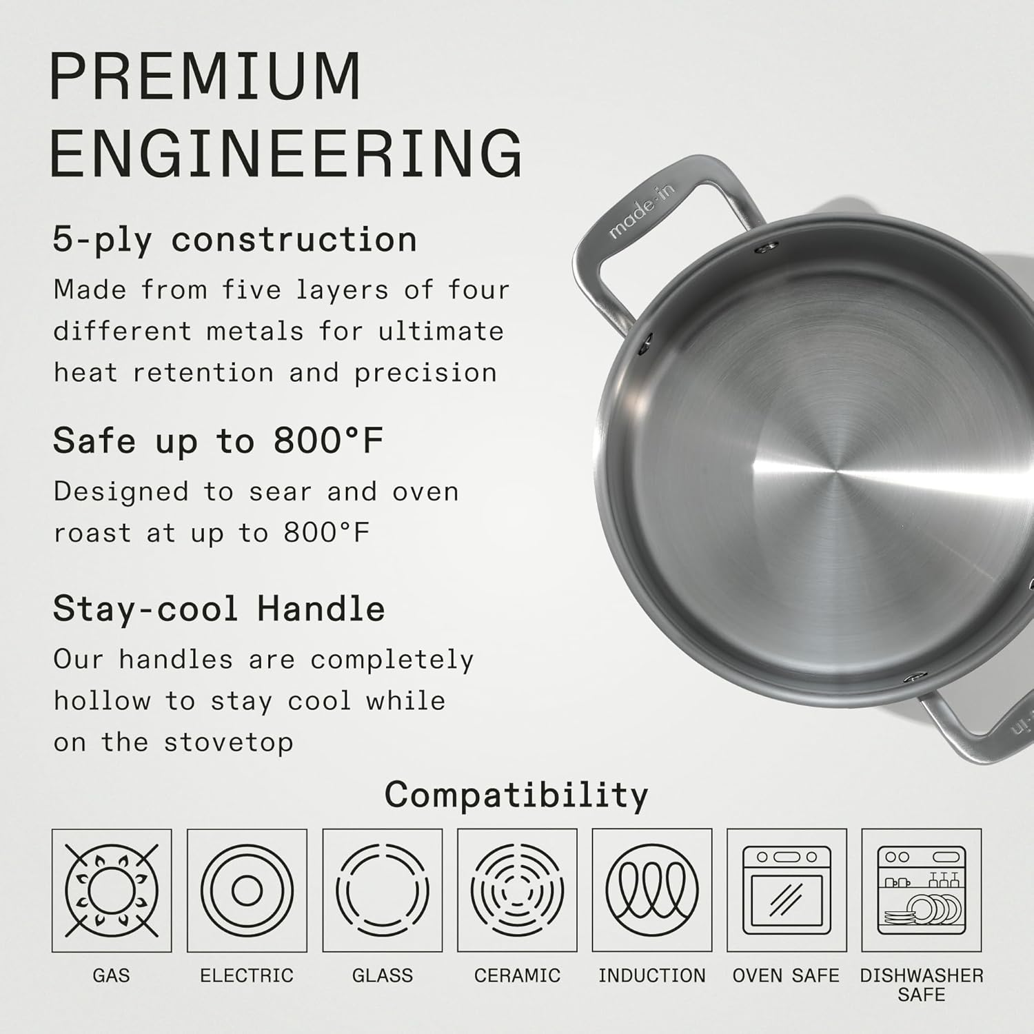 - Essential for Every Kitchen - The Made In Stainless Clad Stock Pot is a must-have kitchen tool, offering maximum heat control, responsiveness, and versatility to elevate your cooking experience