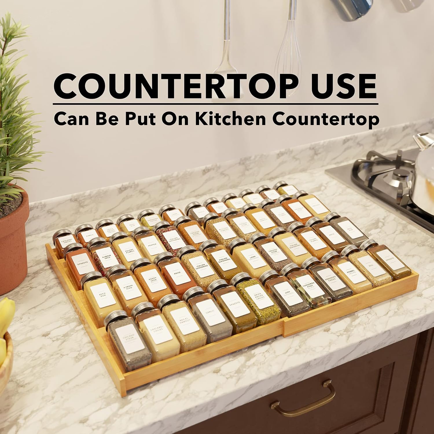 - STURDY CONSTRUCTION - The drawer spice rack is made of durable solid bamboo; Live an organized and sustainable life with this bamboo seasoning drawer organizer