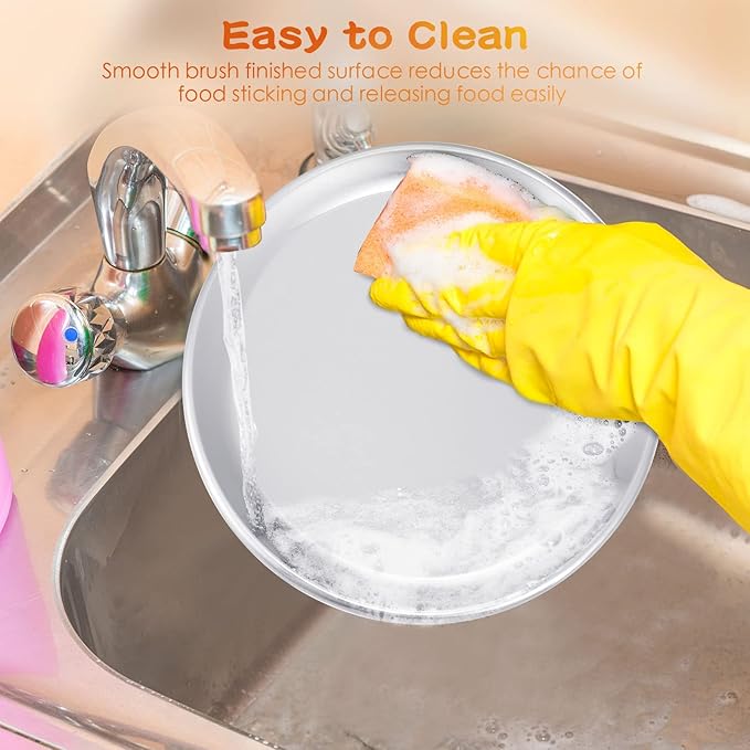 - Easy to Clean: these aluminum pizza pans smooth brush finished surface reduces the chance of food sticking and releasing food easily, provides convenience to clean up, easy to clean even by hand, make sure to dry the baking pans completely after washing and store in dry place for their durability