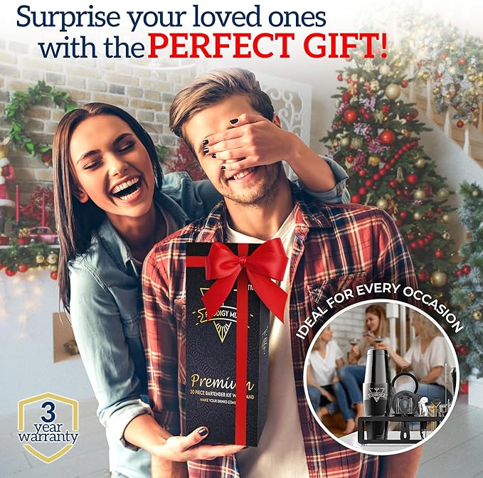 - ✔ THE PERFECT GIFT – Prepare to delight your loved ones. Our all-inclusive cocktail kit is packed inside a luxury gift box, making this martini shaker set the perfect gift for a cocktail lover.