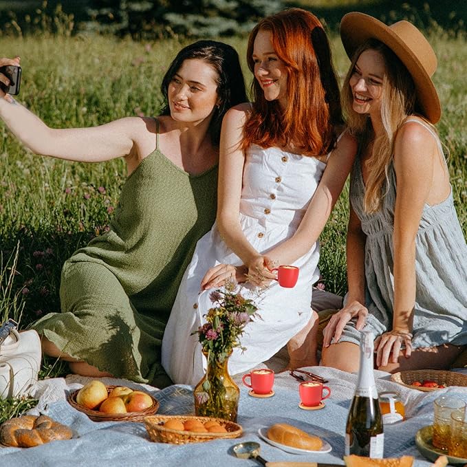 - CHIC AND SLEEK DESIGN: Matte glaze surface and comfortable handle make up a elegant mugs set. What's more pleasing than a sip of espresso in the morning? There is no doubt that caffeine can be a refreshing. The stylish and modern red coffee cups can impress your guests.