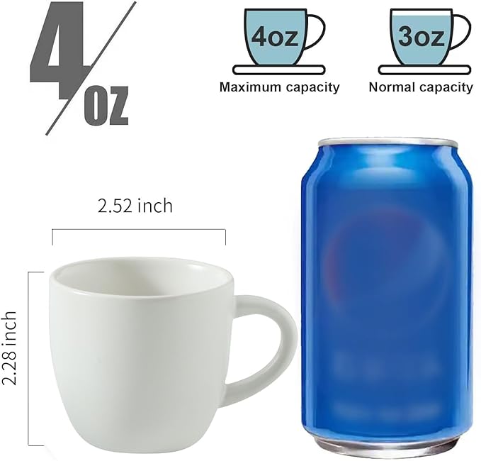 - PERFECT ESPRESSO COMPANION: The ceramic coffee mugs are perfect for cappuccino, latte, a single espresso shot, mocha, Macchiato, tea, smoothie and juice. The espresso cups and saucers set is the awesome gift for your loved one at wedding, housewarming, Thanksgiving, Christmas and New Year.