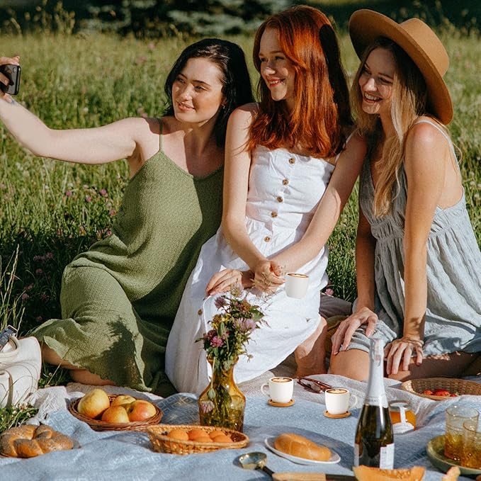 - IDEAL SIZE FOR COFFEE DRINKER: Each espresso cup measure 2.5 inch diameter and each bamboo saucer measures 2.9 inch diameter. The cappuccino cups can hold 3 oz and work well with the espresso machine. A nice espresso coffee cup can help you enjoy the smell and aroma of the coffee. Enjoy the afternoon tea time with your friends using these ceramic coffee cups.
