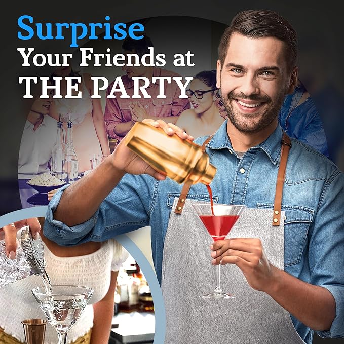 - ✅ SIMPLE BAR SET- The elite set is THE choice for beginners who want to learn to make great drinks. It comes with an 18 oz cocktail shaker that is easy to remove and leak proof. All of the bartender tools are stainless steel and dishwasher safe.