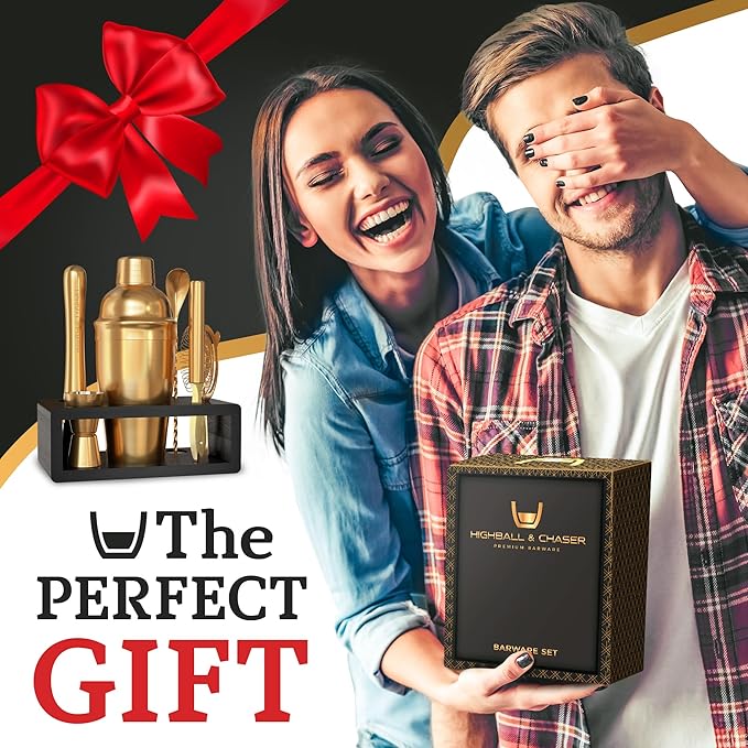 Highball & Chaser Cocktail Shaker Set: Bartender Kit for Home Bar Mixology Cocktail Bar Set Plus E-Book with 30 Recipes (Antique Gold)