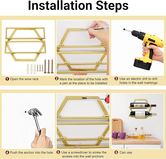 - 【Easy to Install】Enjoy quick and easy installation of your wall wine bottle and glass holder with the easy to use mounting hardware included, which can decorate any wall space and has an important decorative effect.